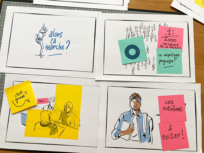 Le texte a été pré-rédigé par le client et ensuite récrit à 4 mains afin de vulgariser son contenu. Le story board a été pensé à partir de ce texte. La première étape de production a été l’enregistrement de la voix off sur laquelle s’est calée la vidéo. Les croquis des différentes planches ont été soumis au client, puis validés et réalisés. la manipulation a été filmée en se calant sur la voix off. La post-production a été réalisée sur Première pro et sur After effect pour l’incrustation des éléments vidéo et des génériques de début et de fin.